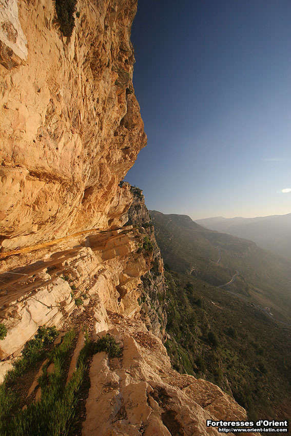 Le site s’étire alors sur près d’une centaine de mètres. Le boyau autorisant la circulation le long de la falaise s’élargit par endroits, mais reste toujours bordé sur un côté par l’impressionnant précipice qui surplombe le lit du Wadi Jezzin .