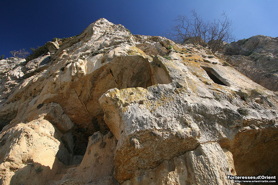 L’histoire de ces “caves” accrochées à la montagne ne nous est connue que par quelques faits épars, lesquels ne permettent pas de retracer précisement leur évolution au sein de l’Orient Latin.