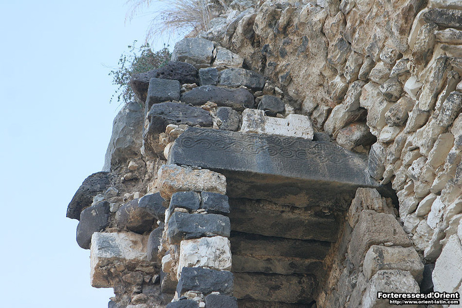 Des détails qui font l’originalité du site, on retiendra les vestiges de la bretèche, malheureusement réduits à un seul des deux corbeaux qui soutenaient l’encorbellement et défendaient cette ouverture, placée, à la manière de celle de burj Arab , en hauteur, au niveau du premier étage. Nous pourrons pousser plus loin la comparaison en remarquant dans les deux cas, des empochements placés symétriquement de part et d’autre de la porte et qui devaient probablement recevoir l’escalier ou l’échelle en bois – aujourd’hui disparu – qui permettait de pénétrer dans la tour.