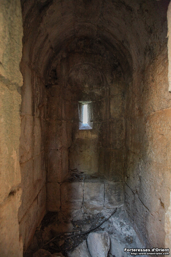 Au deuxième étage, elles sont à linteau plat sous niche voûtée en plein cintre. Il s’agit cette fois d’un modèle courant dans l’architecture forte arménienne en Cilicie.