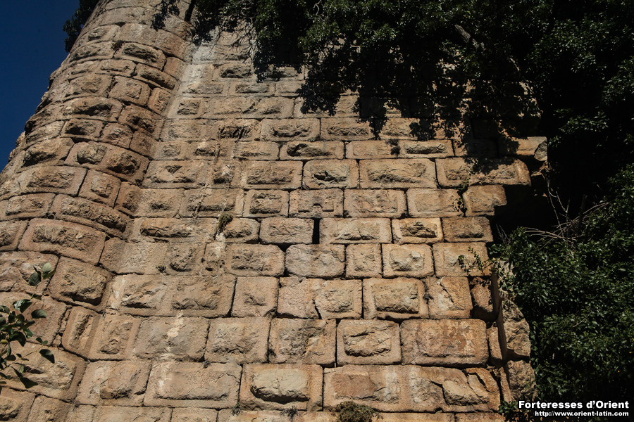 Son élévation est préservée sur quatre niveaux niveaux. Le rez-de-chaussée, malheureusement totalement comblé, et le premier étage utilisent un appareil de moellons larges dont la face visible présente un bossage rustique bien dégagé par un liseré ciselé assemblés en un appareil régulier. les moellons du troisième niveau, encore préservé, ont eux des faces parfaitement dressées. L’effet visuel est remarquable.