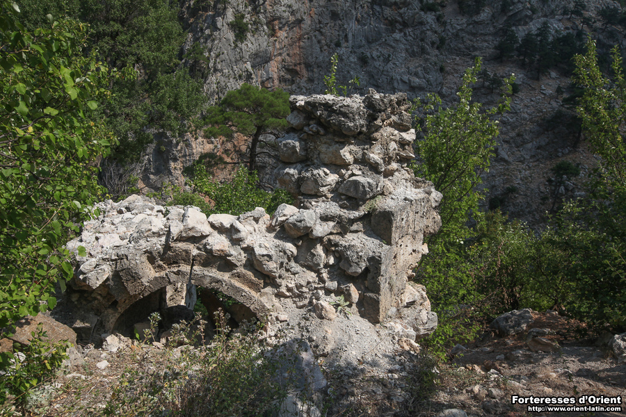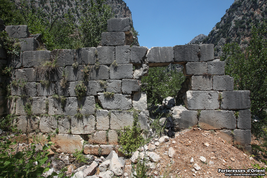 Au premier étage, les archères sont sous linteau monolithe taillé en voussure segmentaire et les niches sont couvertes de linteaux plans reposant sur sommiers en console. Il s’agit d’un modèle d’archère rare en Cilicie. Une seule autre occurrence de ce type d’archère a été reconnue en Cilicie, à Silifke.